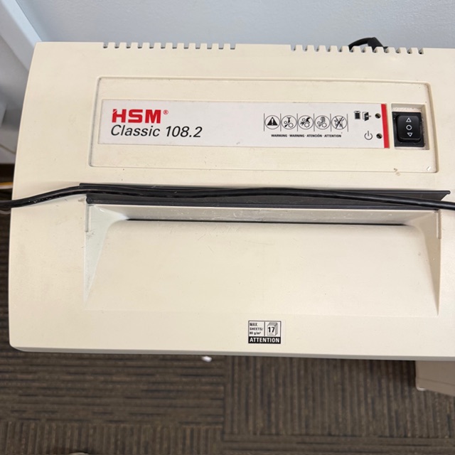 HSM Classic 108.2 Paper Shredder$250.00 HSM Classic 108.2 Paper Shredder. HSM Classic 108.2 Paper Shredder quantity Add to cart Contact Us Additional Information Name* Phone*Email Product Inquiry HiddenForm Completed On ( Page ) MessageCommentsThis field is for validation purposes and should be left unchanged. Additional information Condition Used Related products Tabletop Podium / Lectern $49.00 Add to cart Corporate Wall Art Read more New Mobile Work Cart $49.00 Add to cart Rolling Double-sided Whiteboard $299.00 Add to cart